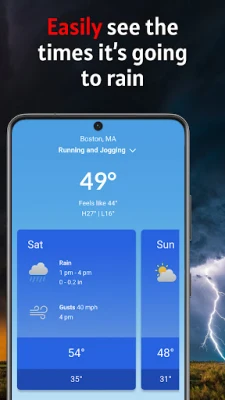 The most accurate way to plan your day. Quickly know when to go with our exclusive green/yellow/red stoplight coloring. Easily see the times when it’s going to rain in your 10-day forecast. Get your local weather forecast with live weather alerts. Stop guessing at what your weather app is trying to tell you – directly see the times the weather will affect you!