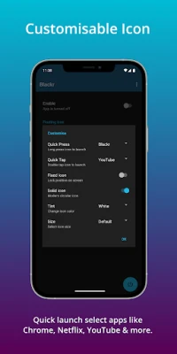 Optional way to use the app is to add a Blackr button in the quick tile settings in device status bar (near wifi, bluetooth, etc). It works seamlessly any time!