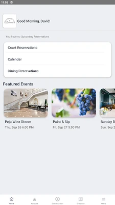 - Make dining or court reservations and sign up for events