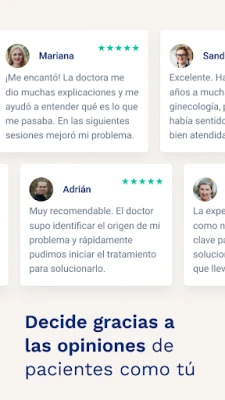 ★ Lee opiniones de pacientes como tú que valoran la atención de los profesionales que forman parte de Doctoralia. Esto te permitirá encontrar a los especialistas médicos mejor valorados de tu zona.