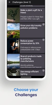 *Empowering Challenges: Immerse yourself in a world of environmental challenges, meticulously designed to inspire positive change. As you conquer each challenge, you earn valuable points and advance through various levels, turning sustainability into an exciting adventure.