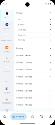 • Large stock of replacement screens, batteries, charging ports, and frames.