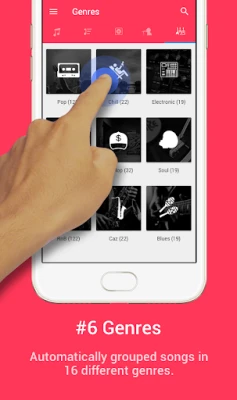 GM Music Player lets you easily find the most appropriate songs by dividing your sound files into 16 different categories like Rock, Pop, Blues, Chill, Electronic, Hip-Hop, Soul, R & B, Jazz, Reggae, Latin, Punk, It provides.