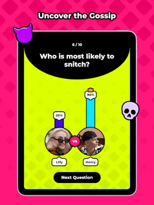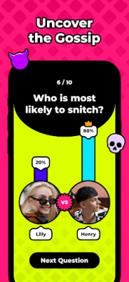 Expose the wild, scandalous, and outrageous sides of the people you think you know with Gossip! Vote who will most likely do lit, outrageous, or crazy things. Watch as your friends reveal what they Gossip about you.