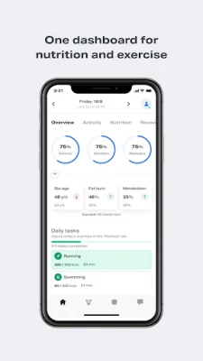 Key Features: • Dashboard with activity, nutrition, recovery, and metabolic data. • Personalized nutrition planning with meal plans and smart options. • Training builder aligned with VO2 Max and RMR results. • Recovery tracking with biological age and fat vs carb burn metrics.
